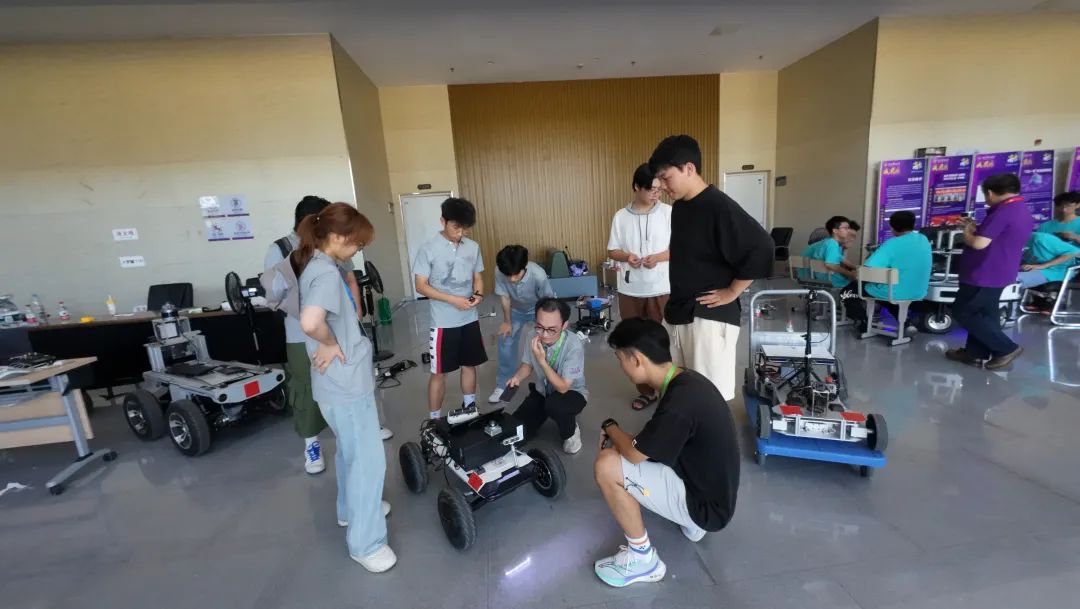 在紧张的比赛现场,队员们不仅要设计无人物流车及其自动驾驶系统用于完成全自主起动、红绿灯路口通行、静态避障(锥桶)、定点交付、躲避行人、静态避障(车辆)、及终点停靠等项目任务,还要在有限的时间内完成系统的调试和优化,他们与来自全国各地的参赛队伍进行了深入的交流和学习,激发了更多的创新灵感。