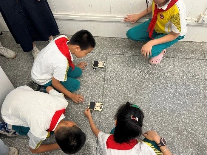 为了让同学们更直观地理解传感器的工作原理,志愿者们设计了两个实验——下雨感应器和智能跟随小车。同学们在志愿者的指导下,亲手制作下雨感应器,了解雨滴传感器的工作原理;随后,小朋友们分组体验了智能跟随小车,通过红外线传感器的实际应用,感受科技带来的便利与创新。