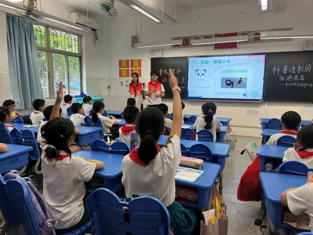 本次科普课堂以“传感器”为主题,志愿者们通过问答互动,引导同学们思考日常生活中常见的传感器,并播放了相关视频,让同学们初步了解了传感器的种类和应用。通过生动有趣的讲解,同学们对传感器产生了浓厚的兴趣,课堂氛围十分热烈。