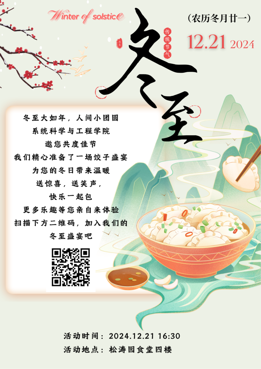冬日虽寒,但心中有光,便温暖如春。这个冬至,我们准备了美味、欢乐与惊喜,期待与你共度这美好时光!赶快加入我们吧,一起包饺子、品冬至、享乐趣,在热腾腾的饺子香气和汤圆的甜糯中,感受属于冬至的独特仪式感!