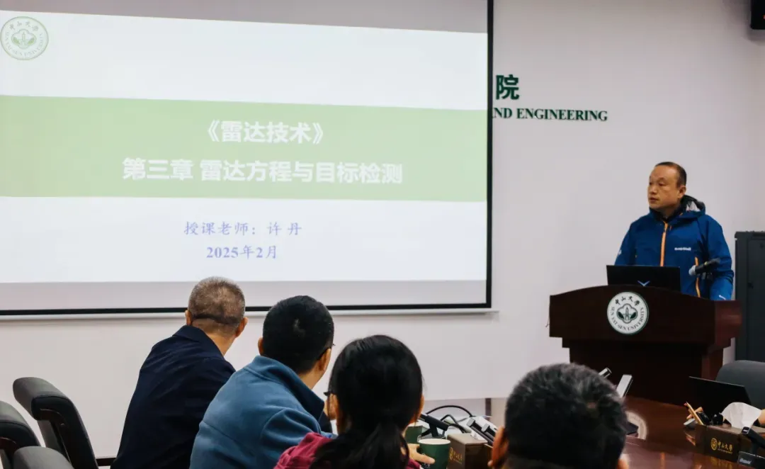 许丹副教授以《雷达技术》课程试讲拉开序幕,重点讲解雷达方程与目标检测。他通过精心选取的二战历史视频,生动还原雷达系统诞生的战略需求背景。从能量守恒原理出发,系统推导了包含发射信号、天线增益、目标反射、回波接收核心等环节的雷达方程构建过程,逻辑链条严谨完整。评审专家充分肯定其物理思维培养的教学设计,建议优化PPT变量格式的学术规范性,适当压缩历史视频时长,并增加课堂互动环节设计以调动学生积极性。