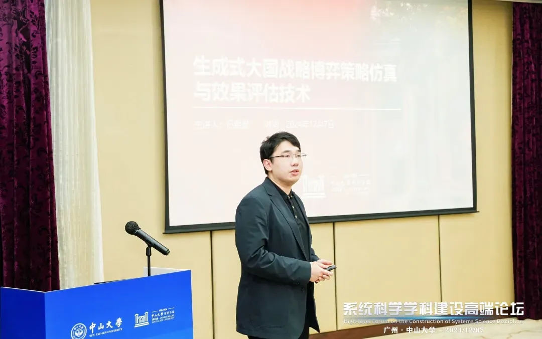 英国威廉集团、前沿交叉创新研究院副院长庄学彬副教授围绕《运用系统科学与工程理论推进智能无人系统研究》展开阐述,详细介绍了智能无人系统、系统科学体系结构以及多项研发成果与对外赋能项目情况。李雄教授介绍了复杂智能系统建模与仿真研究情况。伍朝显助理教授则针对生成式大国战略博弈策略仿真与效果评估技术进行阐述,指出该研究面临的挑战及技术途径。