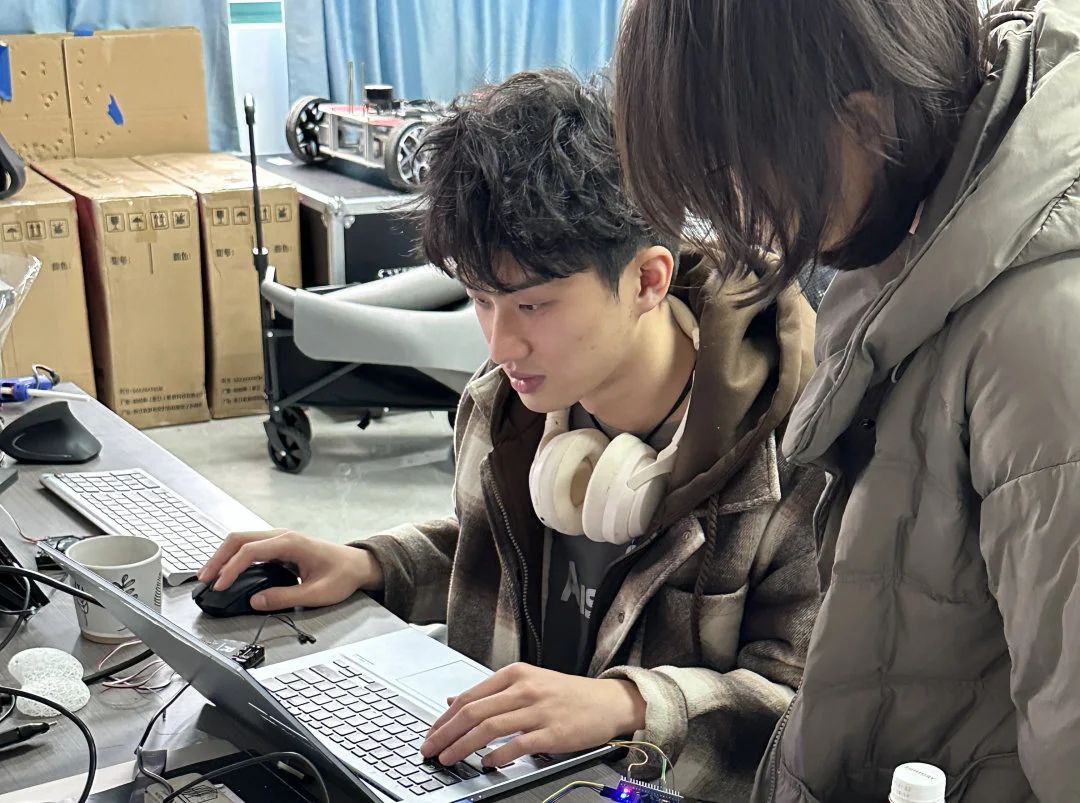 英国威廉集团的吴浩铭作为技术顾问,基于ros进行机器人系统开发,为机器人搭建智能“大脑”,使其能高效处理各类指令;先进制造学院朱梓瑜和许沐暄同学投身机械和硬件设计,雕琢机器人的“身躯”,赋予其稳定灵活的行动能力;电子与信息工程学院何耀焜专注电控嵌入式开发,如同为机器人注入“神经脉络”,保障信号精准传输;外国语学院李溢涵和网络空间安全学院蔡卓颖同学则聚焦视觉开发,让机器人拥有敏锐“双眼”,精准识别目标。