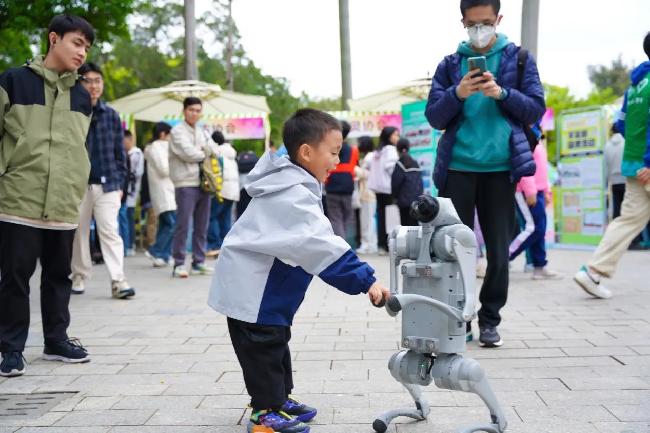 在热闹非凡的校园游园会上,机器人协会的展位吸引了不同年龄段人群观摩。协会成员热情地向来参观的同学们展示各类机器人,讲解其构造与运行原理。