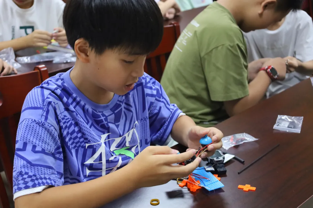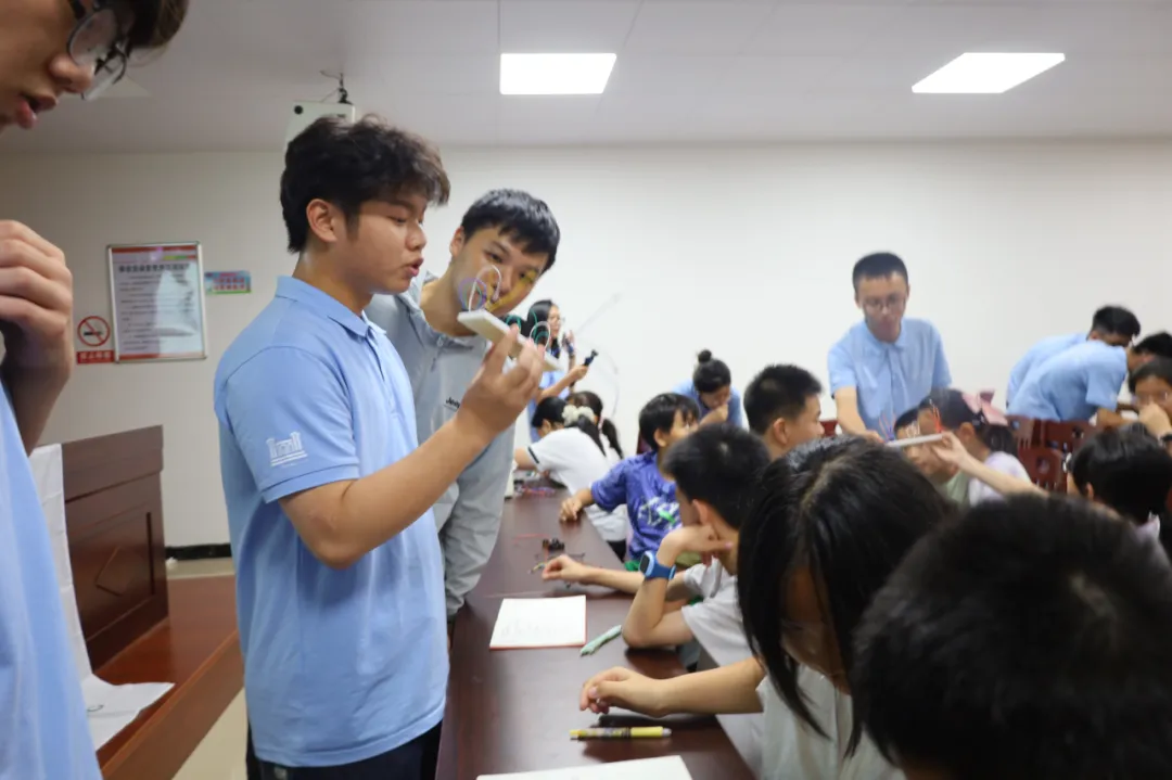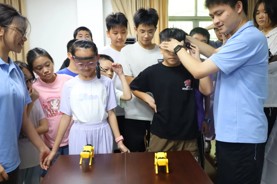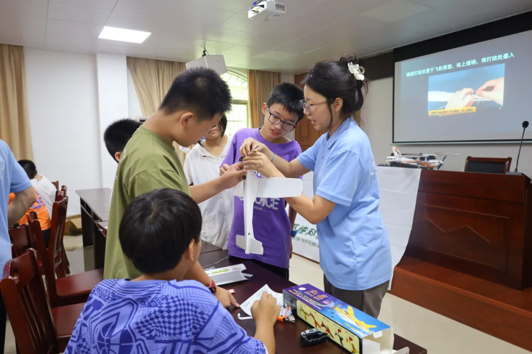 7月6日至7日,实践团分别走进高州市青少年活动中心和高州中学,为近500名中小学生带来了一系列生动有趣的科技课程。课程包括“无处不在的神奇系统”“揭秘飞机飞天魔法”“脑机接口探奇”和“红石密码锁大拆解”等,通过理论讲解与实践操作相结合的方式,激发学生对科技的兴趣。如在“脑机接口探奇”课堂上,学生们分组体验了用脑电波操控机器狗的神奇技术;而在“揭秘飞机飞天魔法”课程中,学生们亲手组装橡皮筋动力航模飞机,感受航空科学的魅力。实践团成员以扎实的专业知识和生动的互动形式,将深奥的科学原理转化为触手可及的体验,赢得了学生们的热烈反响。