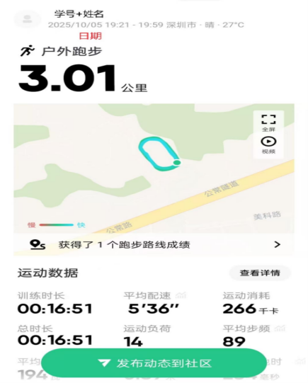 有效截图:包括时间、地点、用时、配速、每公里配速