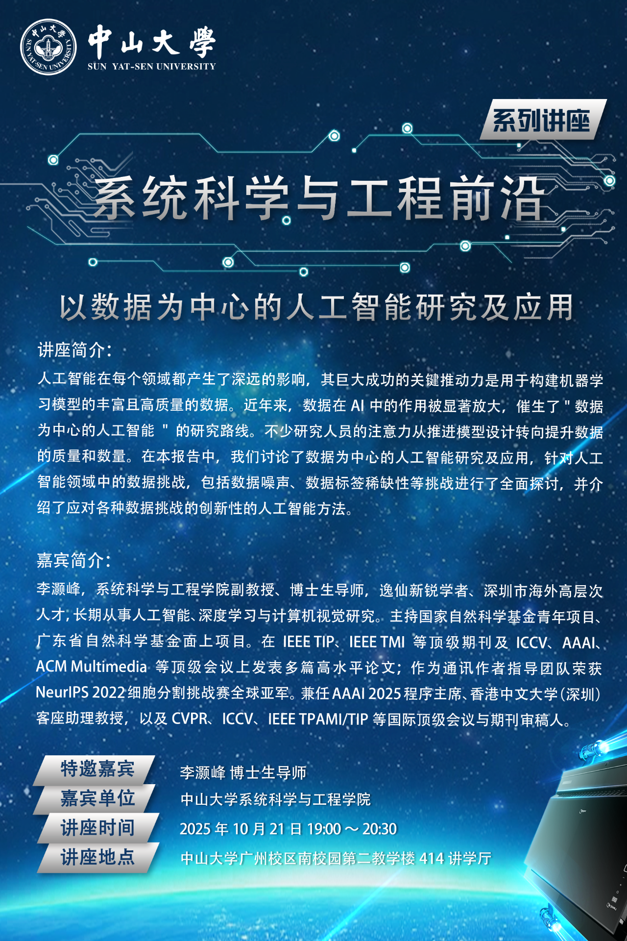 系统科学与工程前沿讲座预告 | 以数据为中心的人工智能研究及应用